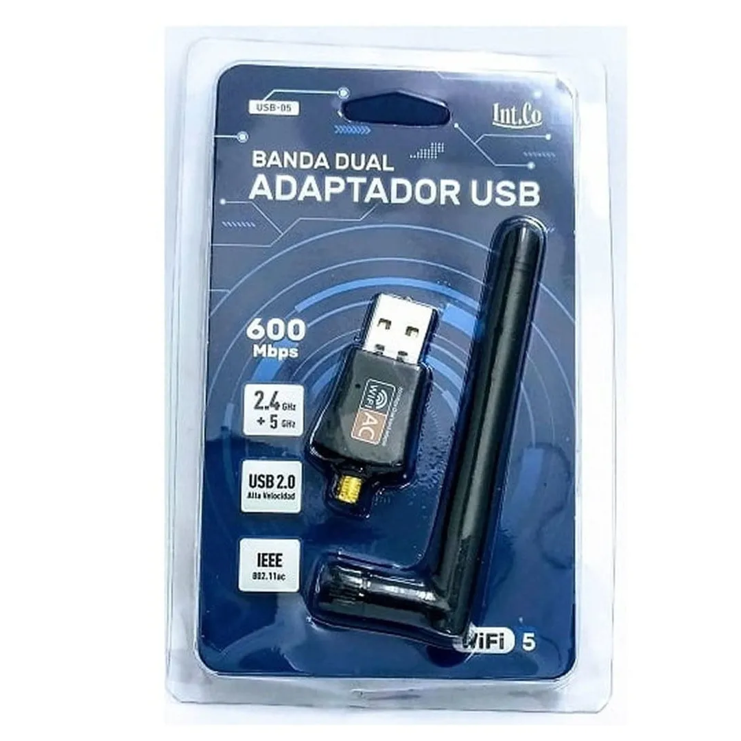 IntCo adaptador USB WIFI Dual Band 600Mbts USB-05 con antena