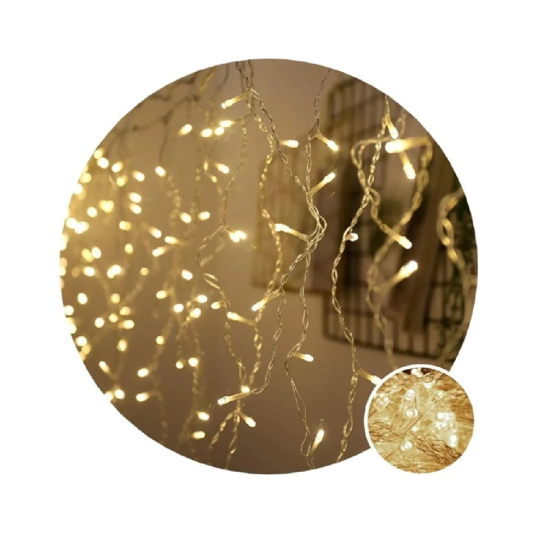 Cortina de luces tipo lluvia, ideal para decorar ventanas, paredes o fondos festivos.