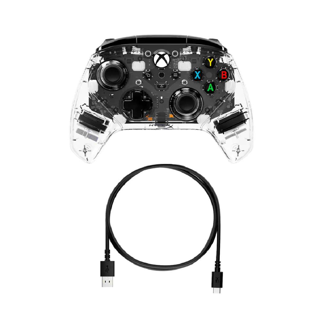 El HyperX Clutch Gladiate RGB Transparente es un joystick con cable optimizado para Xbox y PC que combina un diseño ergonómico con retroalimentación háptica envolvente. Ofrece botones programables, gatillos mecánicos ajustables y retroiluminación RGB personalizable, todo con un agarre cómodo ideal para largas sesiones de juego.
