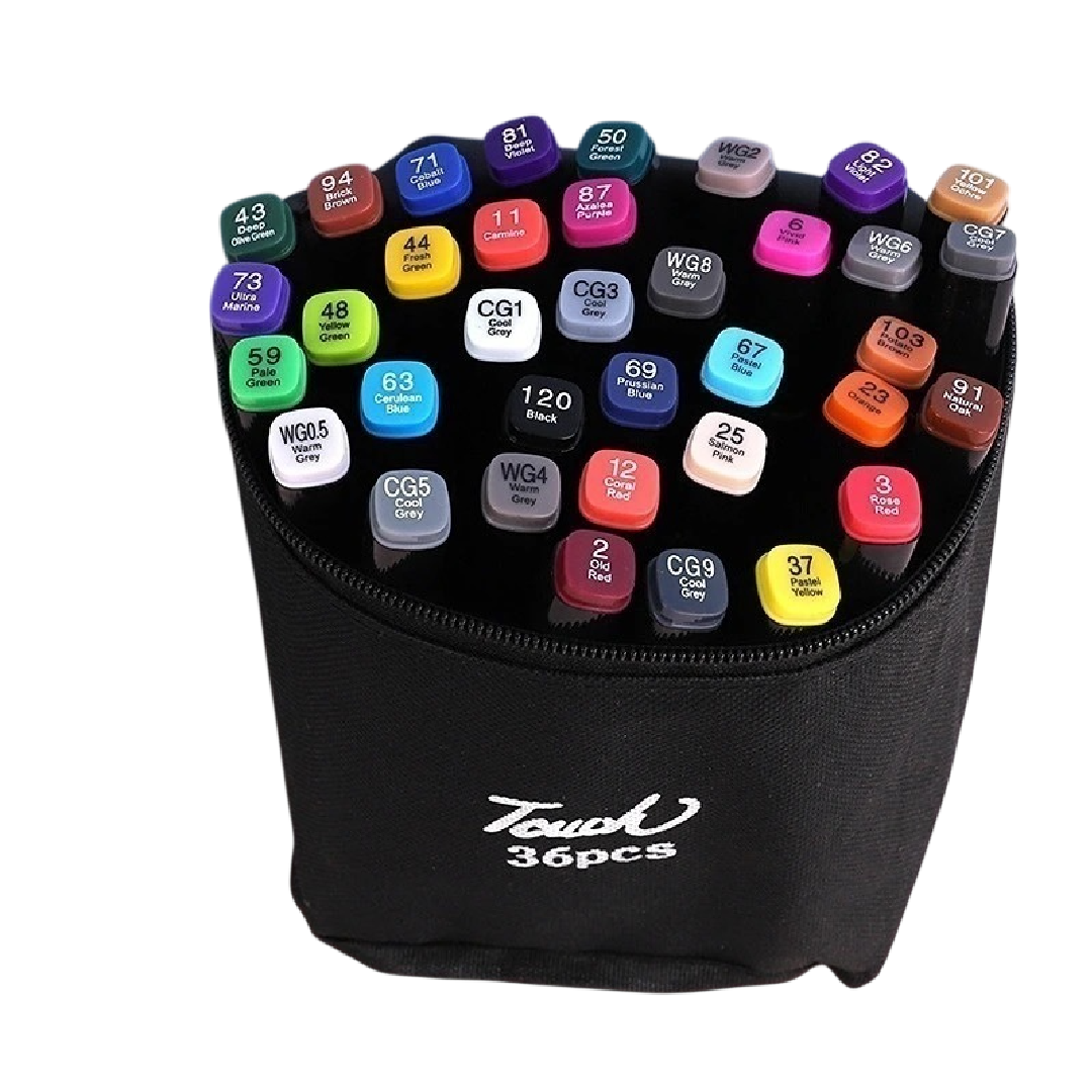 Este set de 36 marcadores de doble punta es ideal para artistas y entusiastas del dibujo.