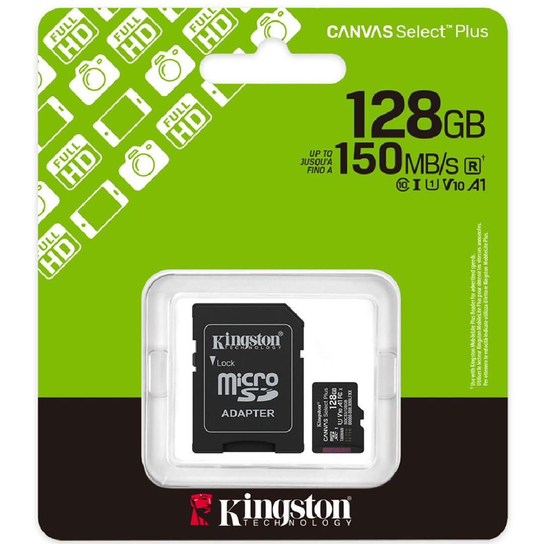 La tarjeta Micro SD Kingston Canvas Select Plus de 128GB está diseñada para ofrecer almacenamiento confiable y rápido en dispositivos móviles, cámaras y tablets. Con velocidades de lectura de hasta 150MB/s y clasificación Clase 10, UHS-I, A1, garantiza un rendimiento estable para aplicaciones, fotos y videos en alta calidad.