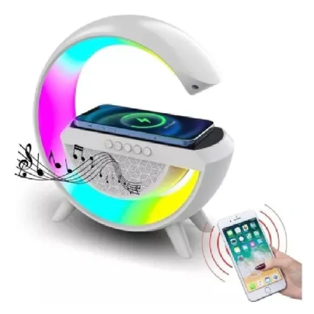 Puede cargar su dispositivo de forma inalambrica, con solo apoyarlo en la base de carga, mientras escucha musica a traves del parlante del cargador y disfruta del juego de luces.