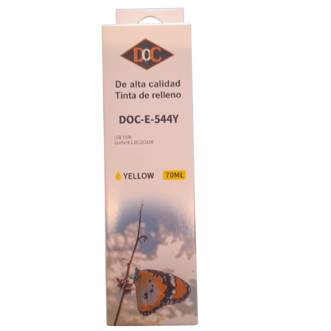 Mantené tu impresora Epson siempre lista con la Botella de Tinta Alternativa DOC-E-544Y de 70ml. Calidad y rendimiento que garantizan impresiones nítidas y duraderas. ¡No te quedes sin tinta en los momentos más importantes!